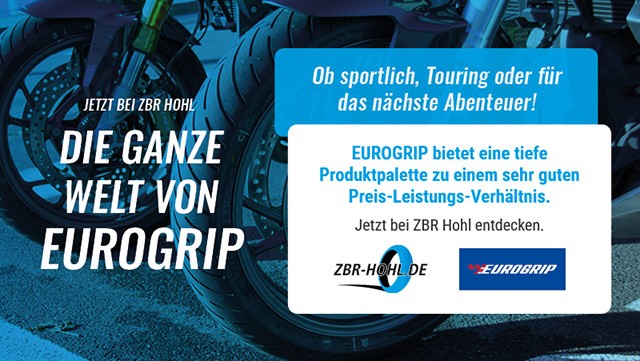 Jetzt bei ZBR-Hohl auf Lager: Eurogrip Motorradreifen – getestet, geliefert, verkauft.