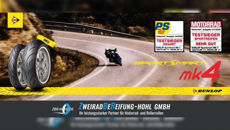 Dieses Jahr gingen die Siege in den Sportreifentests von Motorrad und PS an den Dunlop Sportsmart MK4.